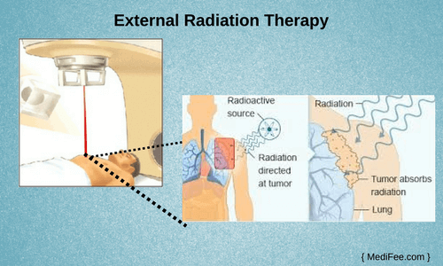 X-Rays, gamma rays or high energy particles can be used in this form of therapy. In this form of treatment, radiation beams are focused on the affected organ or body part. These beams are released from a machine placed externally. There is no need to perform any surgical incision on the skin for this type of therapy.